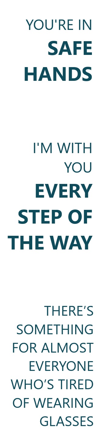 “If you’re looking for someone to talk to about vision correction & seeing better without glasses or contact lenses, explain the different solutions & collaborate with you to create a personal care plan that works for you, then welcome.
